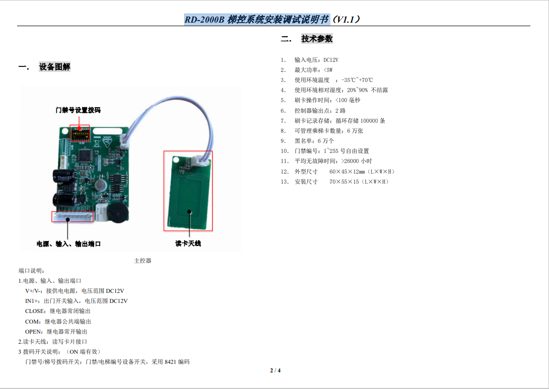 RD-2000B 梯控系統(tǒng)安裝調試說明書